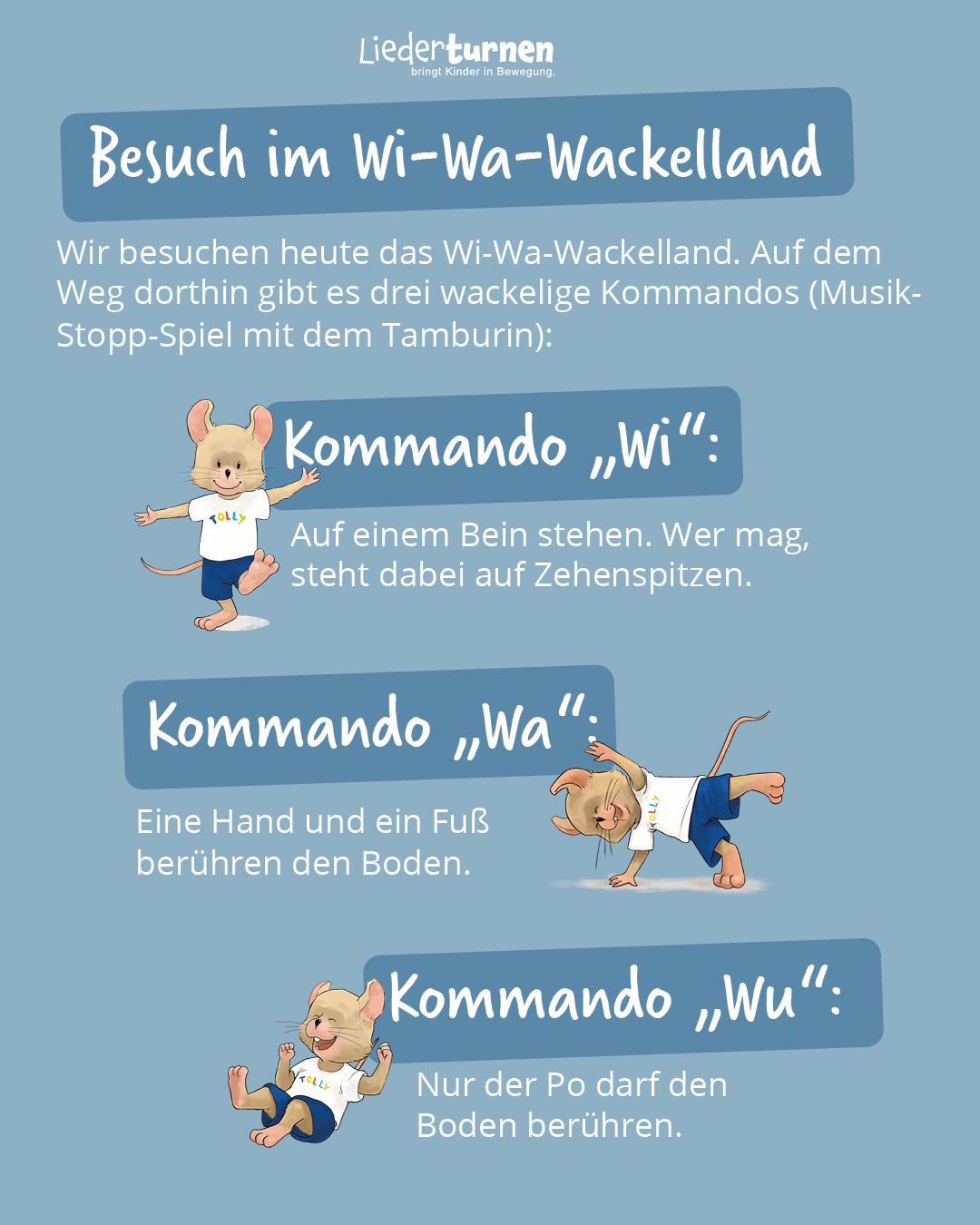 Wir besuchen heute das Wi-Wa-Wackelland. Auf dem Weg dorthin gibt es drei wackelige Kommandos: