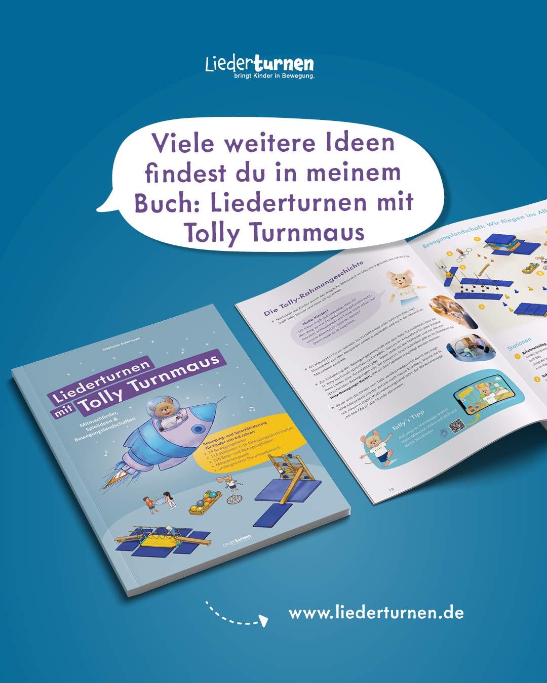 Mit unserem Buch Liederturnen mit Tolly Turnmaus unterstützen wir dich bei der Planung und Durchführung deiner Turnstunden und Bewegungsangebote.