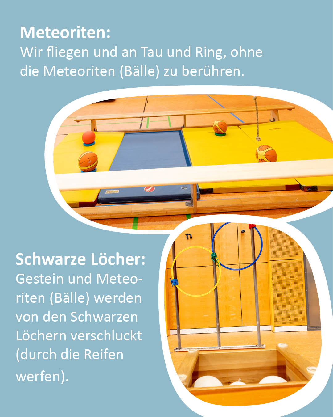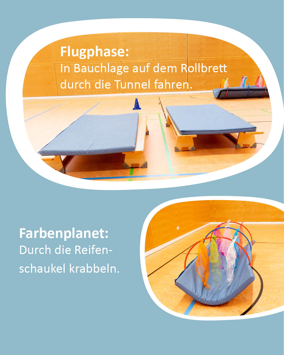 Turnstationen der Turnstunde: Wir fliegen ins Weltall