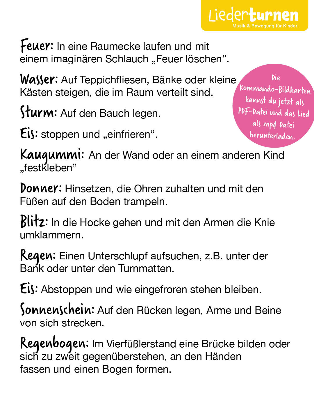 Feuer, Wasser, Sturm Lied für das Musik-Stopp-Spiel