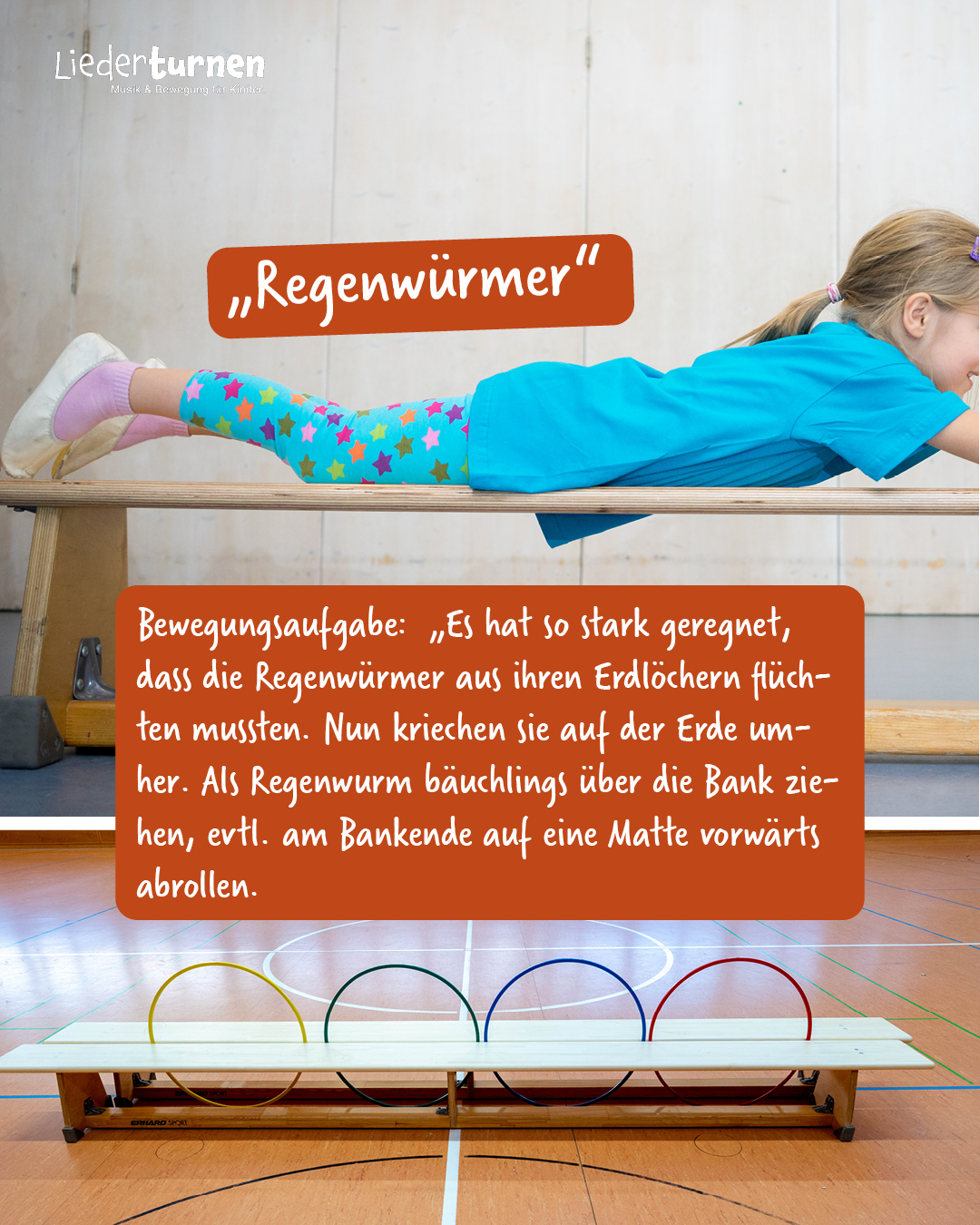 Bewegungsaufgabe: „Es hat so stark geregnet, dass die Regenwürmer aus ihren Erdlöchern flüchten mussten. Nun